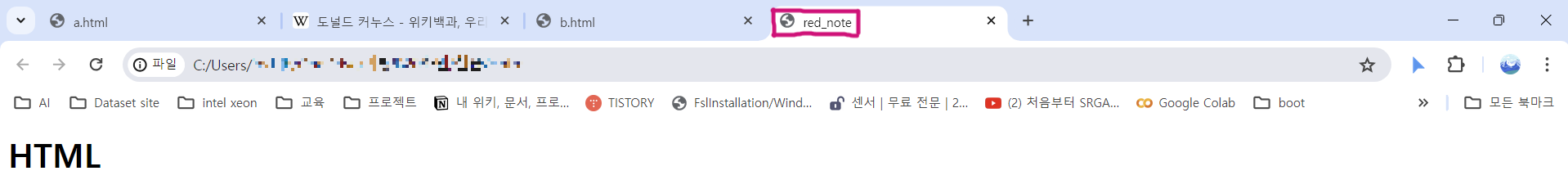 TMI: <title> 태그와 <meta> 태그는 해당 웹페이지의 특성을 반영시키는 것으로 위에서 작성했던 태그들(<h><a>)은