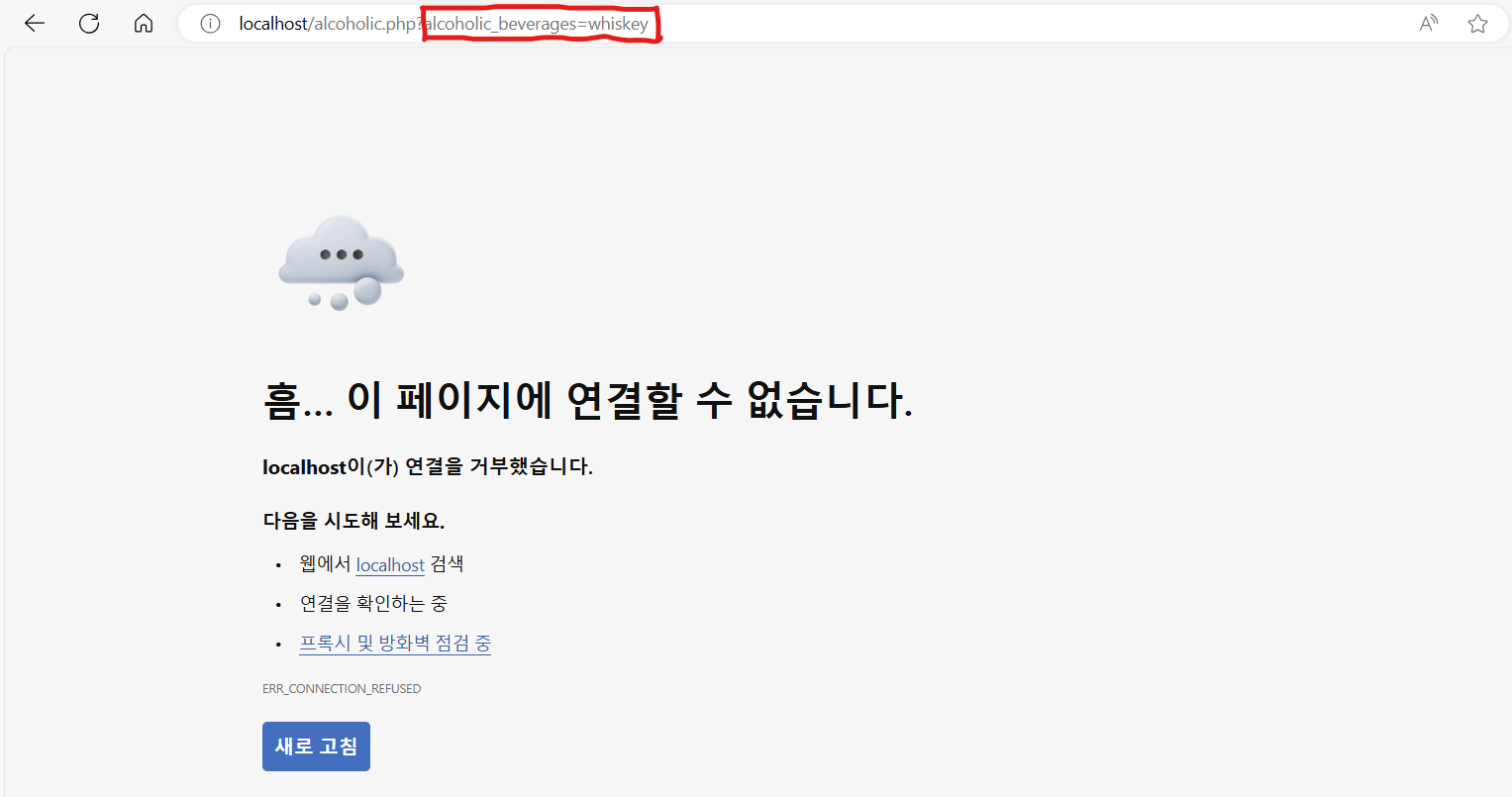 링크 상단에 name과 value에 설정된 alcoholic_beverages와 whiskey 가 확인된다.