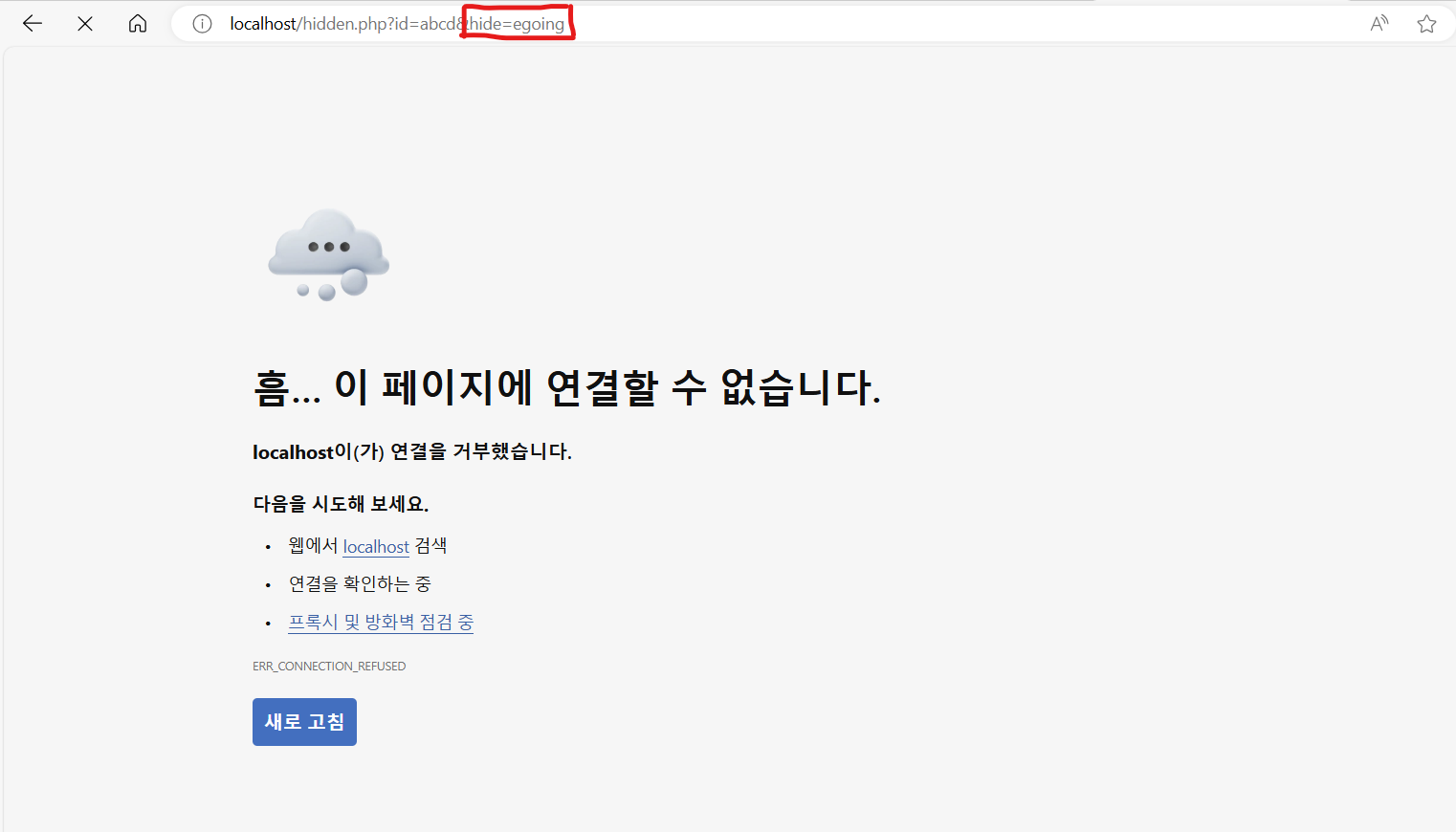 (hidden 이란 버튼이나 체크 박스가 없지만 전송 후 링크를 확인해보면 서버로 같이 전송된 것을 볼 수 있다.)