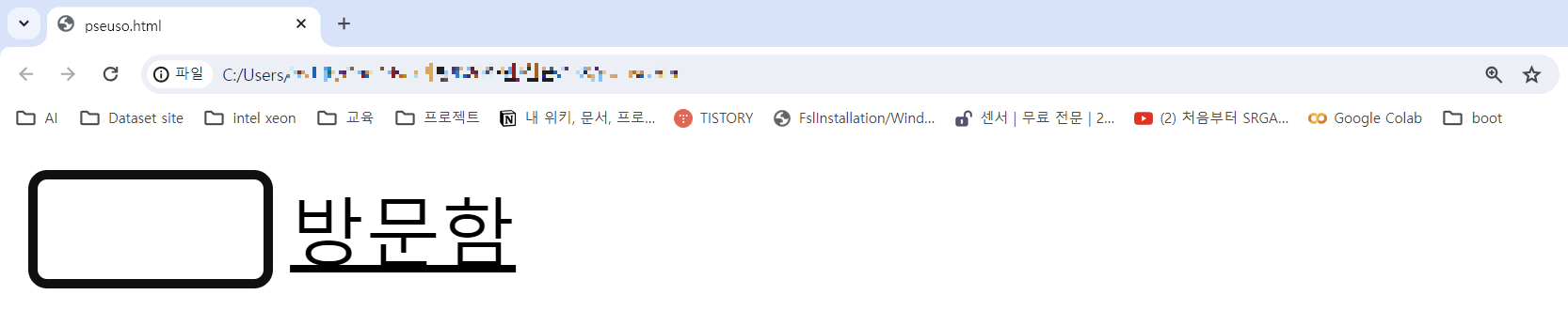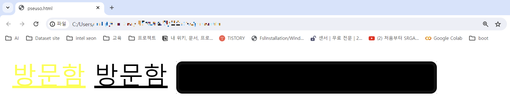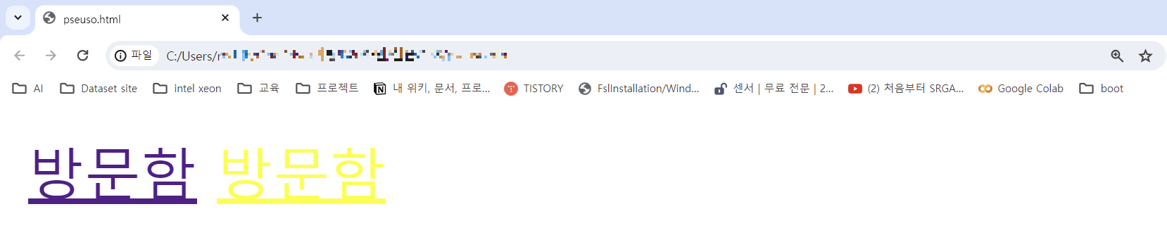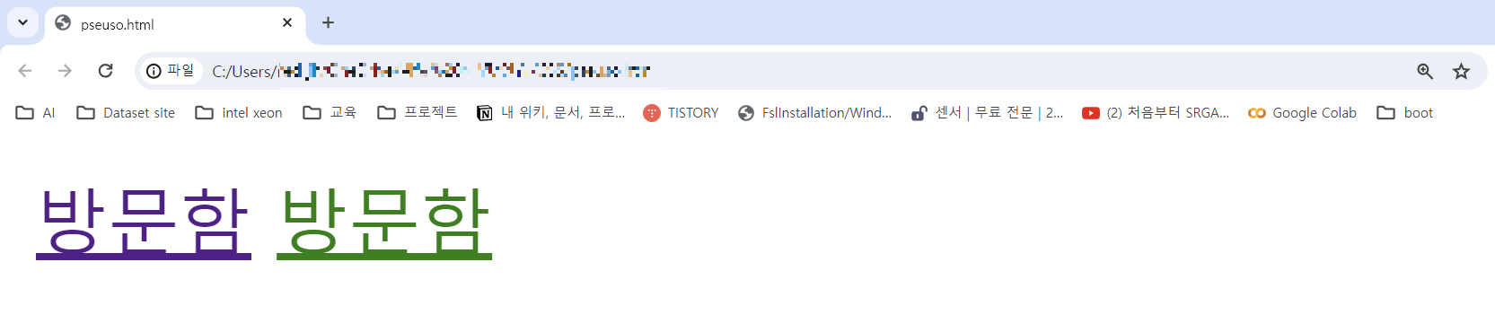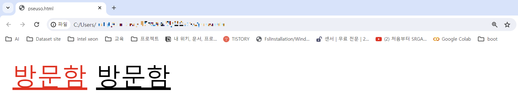 방문함 방문함( link 설정으로 방문하지 않은 링크의 색이 black 으로 설정된 것을 확인한 수 있다.)