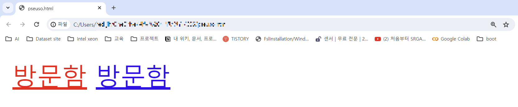 방문함 방문함(visted 설정으로 방문한 링크의 색이 red 로 바뀐 것을 확인할 있다.)
