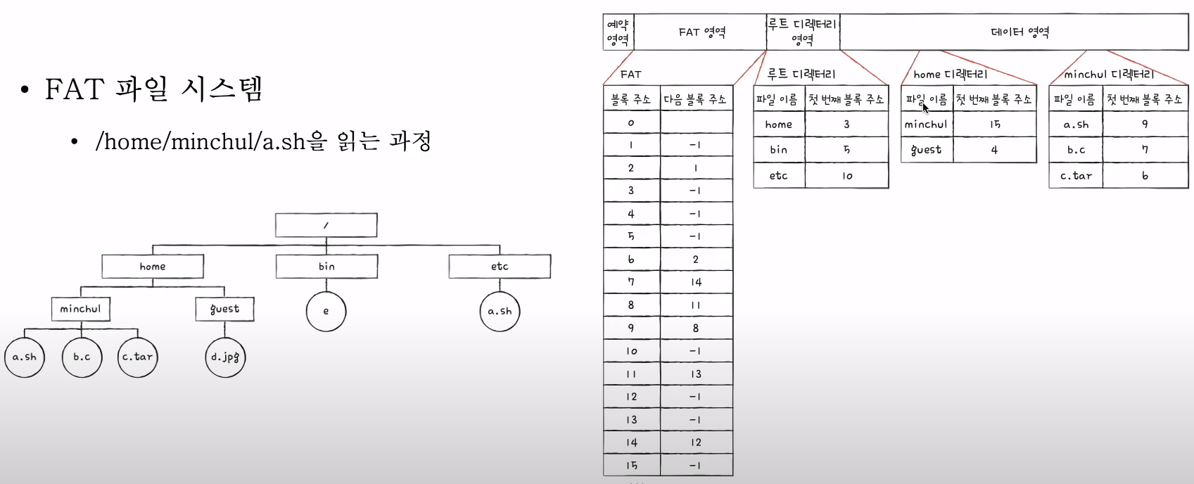 해당 파일의 첫 번째 블록 주소 부터 블록 단위 길이 만큼 블록들의 다음 블록 주소를 읽어가며, 마지막 블록에선 끝을 알리는 표시자를 확인하게 된다.
