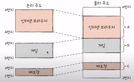 이렇게 매번 바뀌는 메모리의 상태를 매 순간 알지 못해도 주소를 활용할 수 있겠끔 하기위해