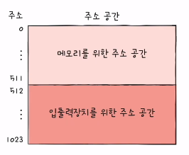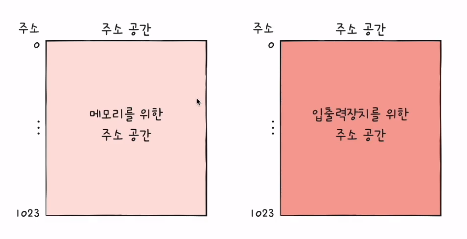 메모리 맵 입출력 - 메모리에 접근하기 위한 주소 공간과 입출력 장치에 접근하기 위한 주소 공간을 하나의 주소 공간으로 간주하는 방법