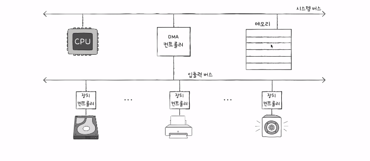 (이런식으로 입출력 장치에 RAM 이 탑재되거나 입출력 전용 CPU를 탑재하는 하드웨어도 있다)