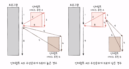 하지만 인터럽트에는 우선 순위란게 존재하기 때문에 모든 인터럽트를 순차적으로 처리할 수 없다.