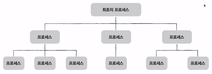 부모 프로세스는 여러 자식 프로세스를 생성할 수 있고, 자식 프로세스 또한 자식 프로세스를 생성 시킬 수 있는데 이렇게 생성시켜 나가다 보면 자연스럽게 계층 구조가 형성된다.