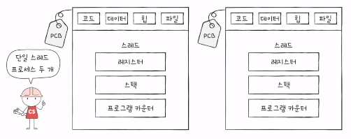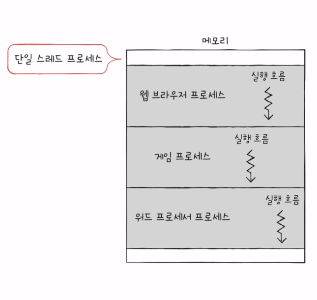단일 스레드 프로세스 - 실행 흐림이 하나임 프로세스
