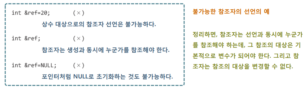 변수의 성향을 지니는(값의 변경이 가능한) 대상에 대해서는 참조자의 선언이 가능