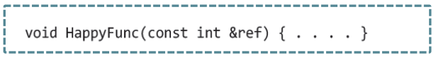 함수 HappyFunc 내에서 참조자 'ref를 이용한 값의 변경은 허용하지 않겠다' 라는 의미로 사용되어,