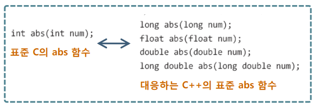 '정수형만' 사용하는 C의 abs 함수를 C++ 에선 '여러 자료형'으로 사용할 수 있게 되었음