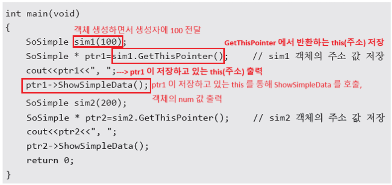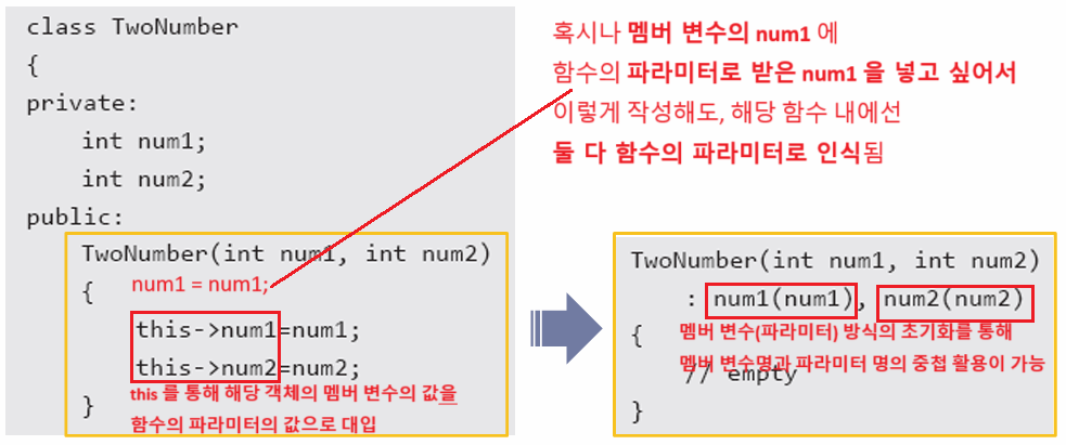 - 내부에서 this 포인터를 통해 현재 객체의 멤버 변수에 접근