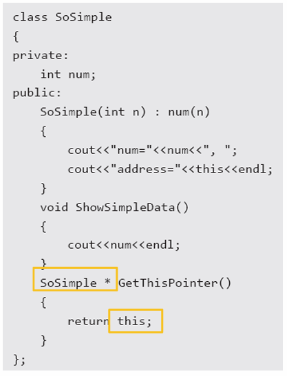 왜냐하면 this 포인터는 this 가 사용된 객체 자신의 주소값을 정보로 담고 있는 포인터이기 때문